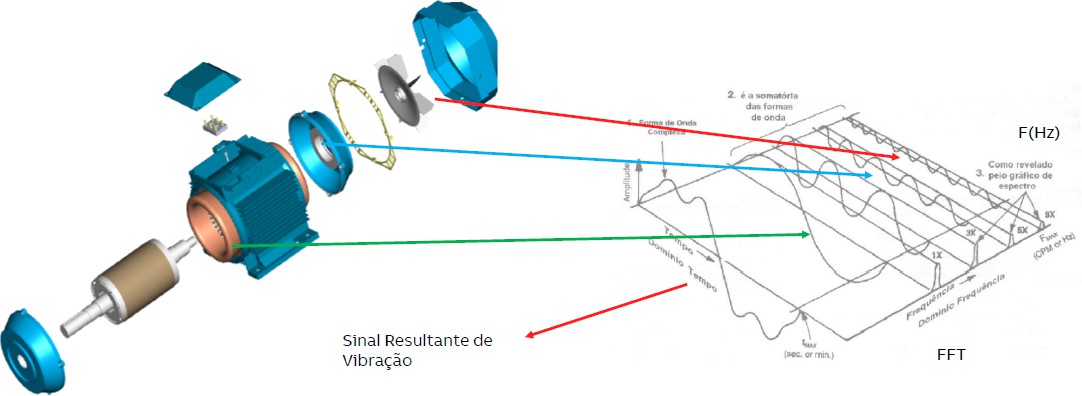 Sensores de vibração convencionais ,coletam o sinal de vibração e enviam para uma plataforma em nuvem e então essa plataforma fará a decomposição do sinal. Já no ABB Ability™ Smart Sensor o próprio sensor decompõe o sinal de vibração global e envia os dados para a plataforma Powertrain.