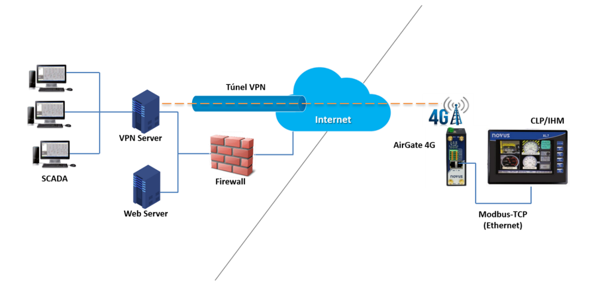 - Acesso Remoto Seguro e Criptografado: A segurança é o pilar. Ambos suportam múltiplos túneis VPN, como OpenVPN, IPsec, GRE e DMVPN. Esta criptografia de ponta a ponta garante que o acesso aos seus sistemas SCADA, CLPs e IHMs seja tão seguro quanto se estivesse no local. O firewall integrado impede acessos não autorizados.