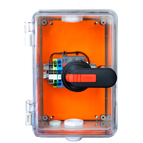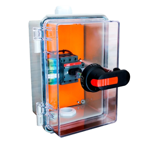 - uma chave seccionadora ABB com contatos NA/NF, proporcionando indicação clara de estado (aberta/fechada).
